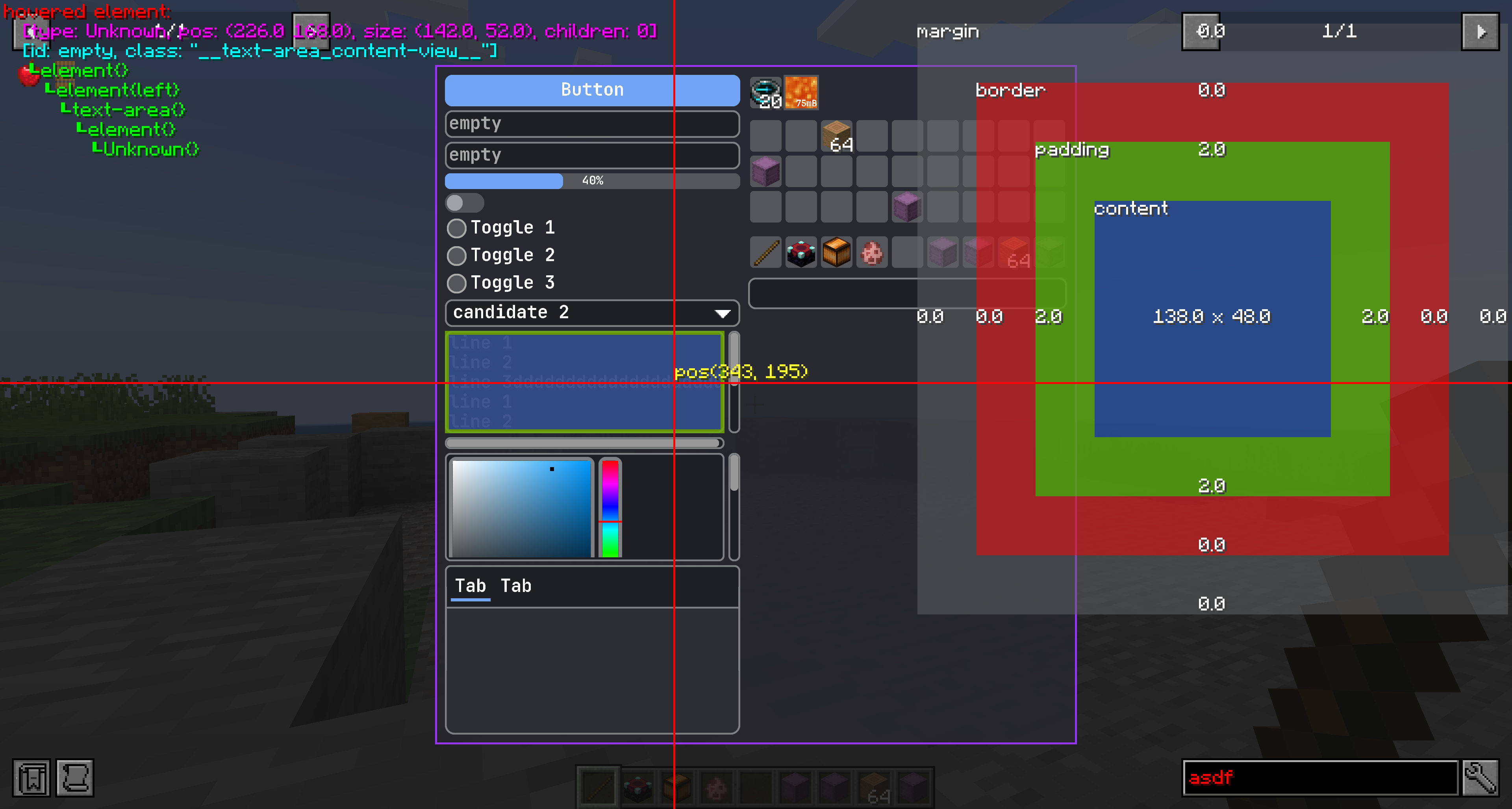 getWidget() Returns the widget instance used by the Minecraft Screen.