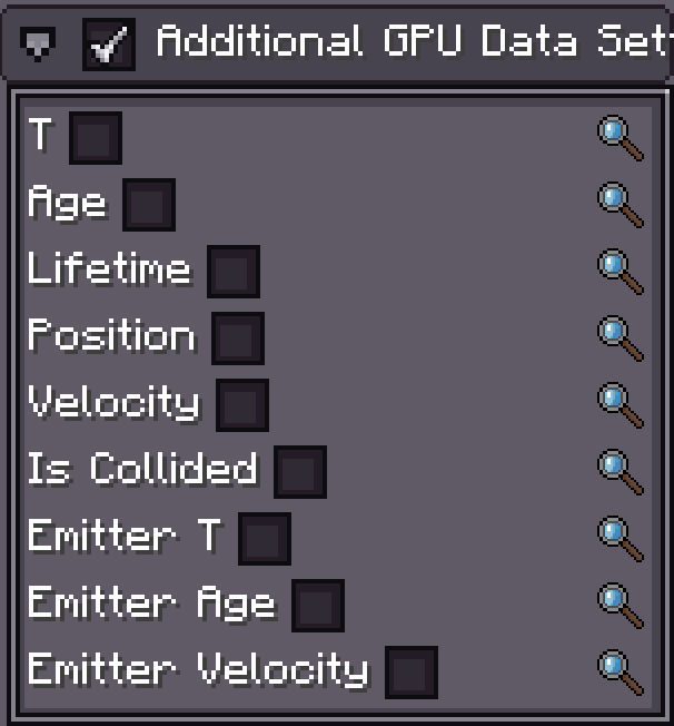 In the Particle Emitter Inspector, enable Additional GPU Data and select the data fields you need.