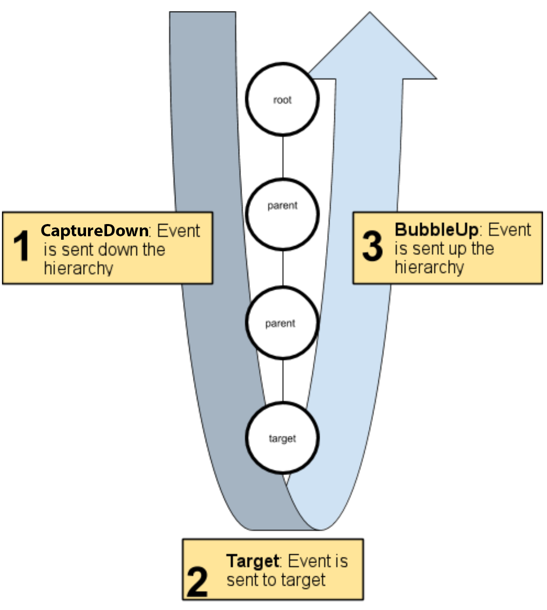 target. This is the capture-down phase. - The event target receives the event.